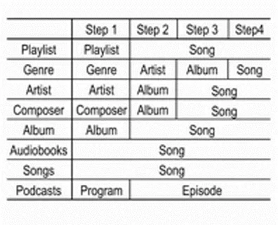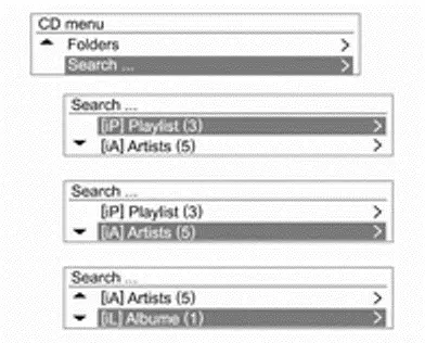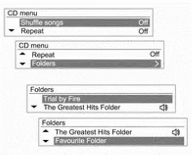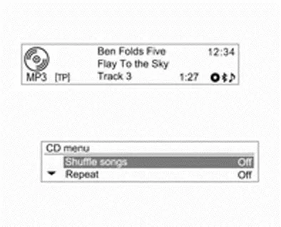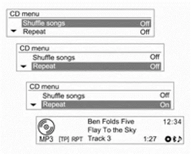 Het iPod-menu gebruiken In het iPod-menu zijn de instructies voor Songs willekeurig afspelen / Herhalen / Mappen / Zoeken... (inclusief Audiobooks en Componisten) identiek aan die in het CD-menu van de CD/MP3-speler; alleen het item iPod uitwerpen is toegevoegd. Raadpleeg om te gebruiken elk item in het CD/MP3-menu.