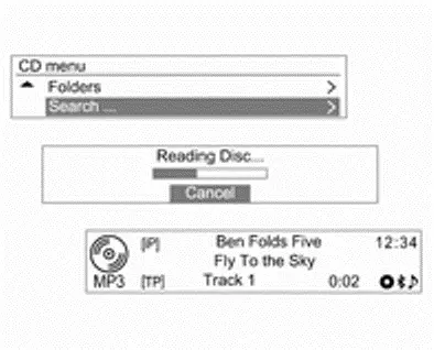- Wanneer een niet-leesbare disk is ingelegd, wordt de disk automatisch uitgeworpen en een diskfoutmelding weergegeven; het systeem schakelt vervolgens naar de vorige gebruikte functie of naar FMradio.