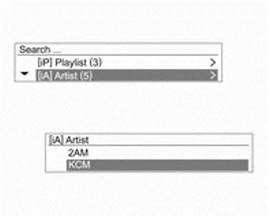 - Draai aan de draaiknop om de cursor te verplaatsen en de songlist weer te geven die wordt afgespeeld.