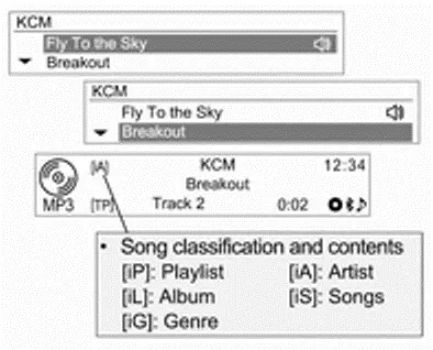 - Om informatie over het album (disktitel), de song (songtitel) en de artiest (song artiest) weer te geven moet het bestand compatibel zijn met de ID3 Tag V1- en V2-bestandsindelingen.