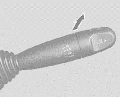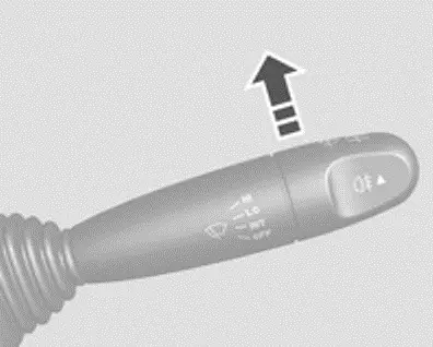 Zet het contact in de stand ON en beweeg de ruitenwisser/sproeierschakelaar omhoog om de ruitenwissers in te schakelen.