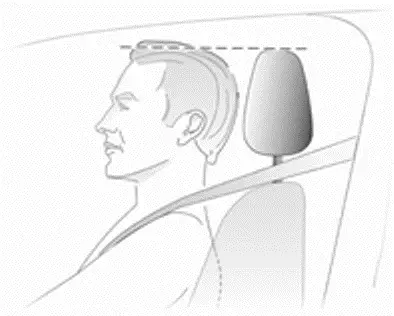 De bovenzijde van de hoofdsteun moet op gelijke hoogte zijn als de bovenzijde van het hoofd. Is dit bij zeer lange personen niet mogelijk, dan de hoofdsteun in de hoogste stand zetten (bij zeer kleine personen de hoofdsteun juist in de laagste stand zetten).