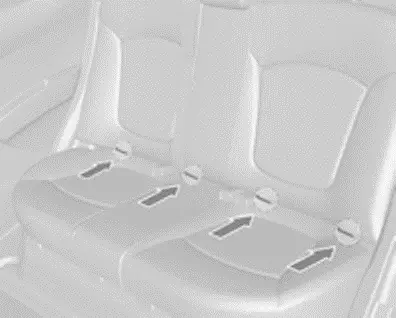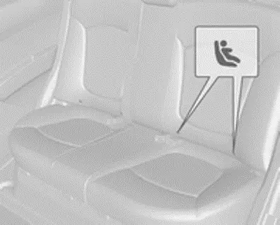 De plaats van de onderste bevestigingspunten wordt aangegeven door een cirkelvormige markering aan de onderkant van de achterbankleuning.