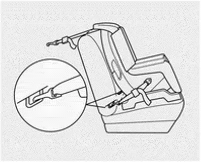 2. Bevestig de klem aan de band van het kinderzitje aan de Top-tetherverankering, en zorg er daarbij voor dat de band niet gedraaid is.