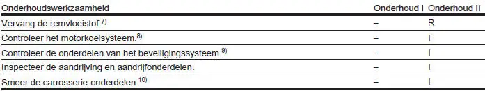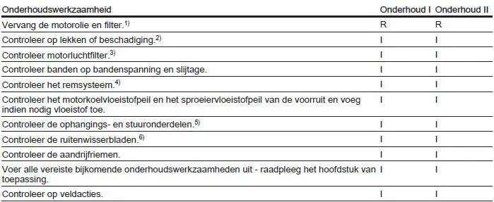 Onderhoud I: gebruik Onderhoud I voor de eerste onderhoudsbeurt of als