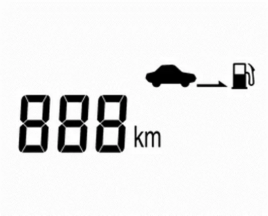 Deze modus geeft de geschatte rijafstand tot een lege tank aan vanaf het huidige brandstofpeil in de brandstoftank.